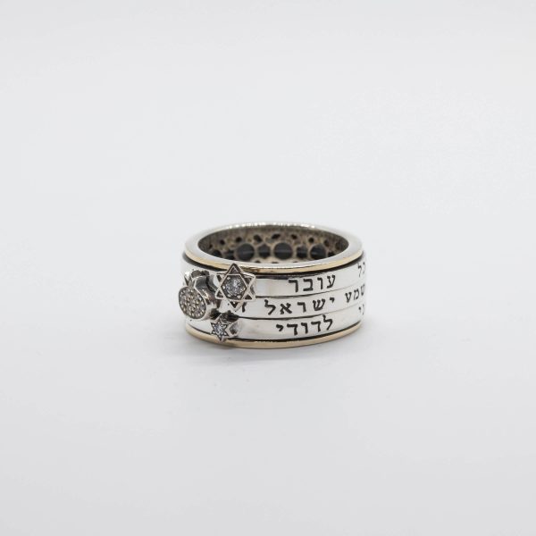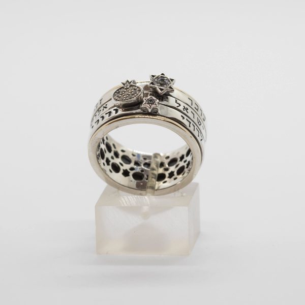 A Jewish prayer rotating ring designed with pomegranate and Star of David