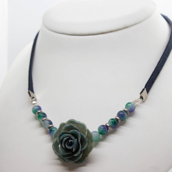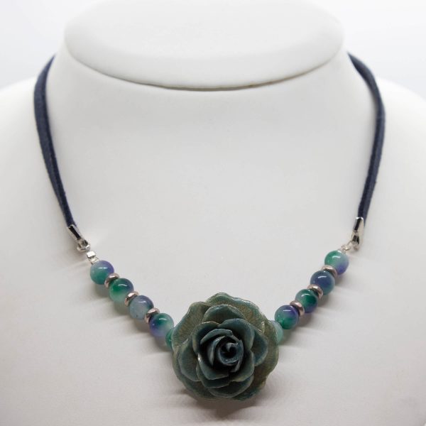 A real blue rose flower necklace