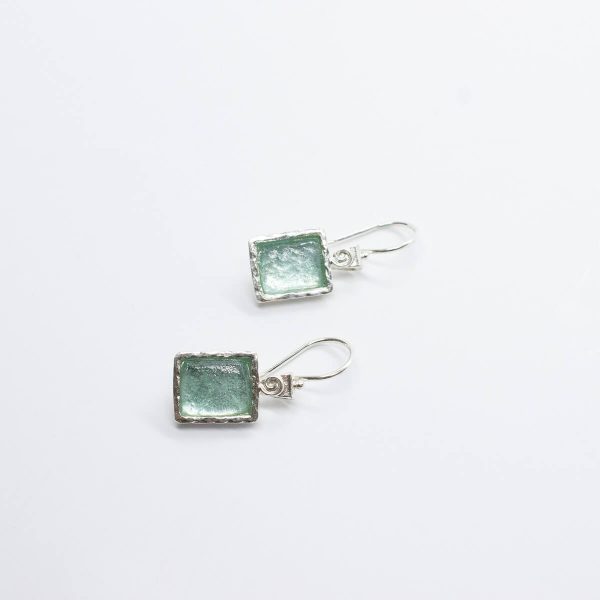Roman glass sterling silver earring.