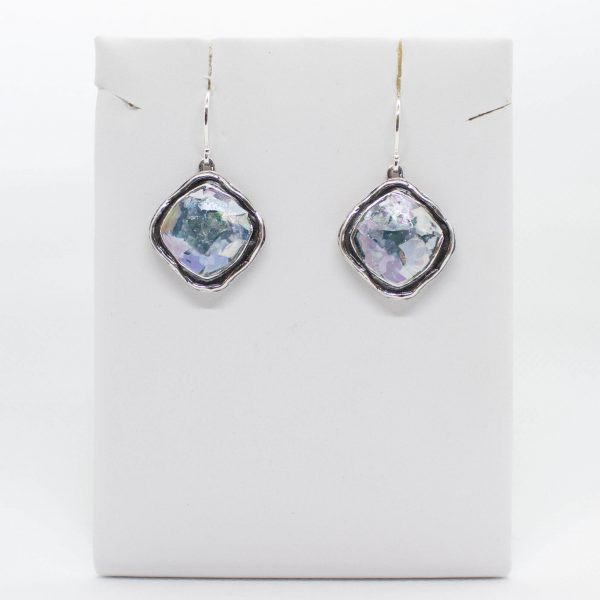Roman glass sterling silver earring with Patina.