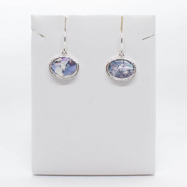 Roman glass sterling silver earring with Patina.