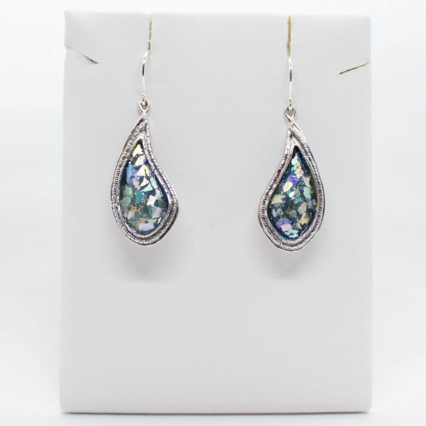 You are now the proud owner of a unique piece of jewelry designed and handcrafted by the artists of “Roman Glass Company” at Kibbutz Revadim. your jewelry is inlaid with a fragment of ancient glass, discovered in an archeological excavation in the holy land. The “patina” (exquisite surface coloring) was created by chemical interaction with mineral-rich soil over the course of 2000 years. We take pride in the fine workmanship involved in manufacturing this jewelry and hope that you enjoy wearing it.