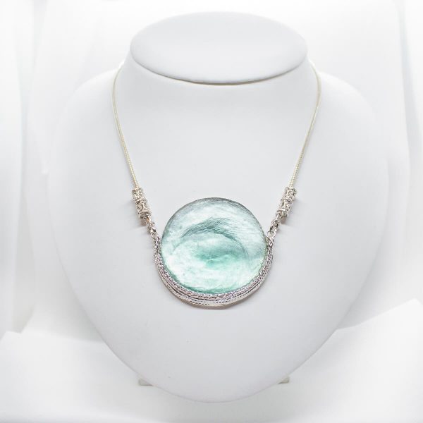 You are now the proud owner of a unique piece of jewelry designed and handcrafted by the artists of “Roman Glass Company” at Kibbutz Revadim. your jewelry is inlaid with a fragment of ancient glass, discovered in an archeological excavation in the holy land. The “patina” (exquisite surface coloring) was created by chemical interaction with mineral-rich soil over the course of 2000 years. We take pride in the fine workmanship involved in manufacturing this jewelry and hope that you enjoy wearing it.