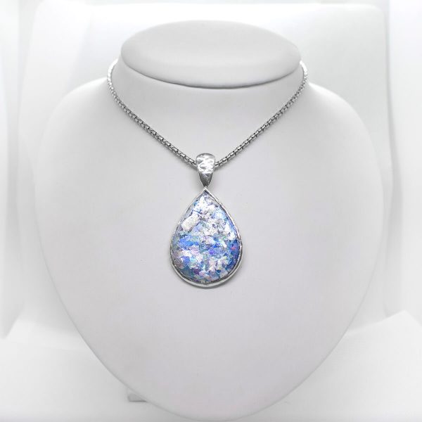 You are now the proud owner of a unique piece of jewelry designed and handcrafted by the artists of “Roman Glass Company” at Kibbutz Revadim. your jewelry is inlaid with a fragment of ancient glass, discovered in an archeological excavation in the holy land. The “patina” (exquisite surface coloring) was created by chemical interaction with mineral-rich soil over the course of 2000 years. We take pride in the fine workmanship involved in manufacturing this jewelry and hope that you enjoy wearing it.