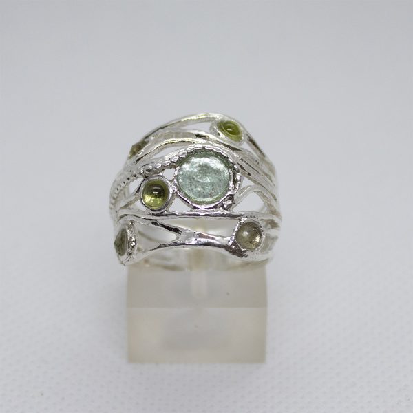 Roman glass sterling silver ring with semi precious stones