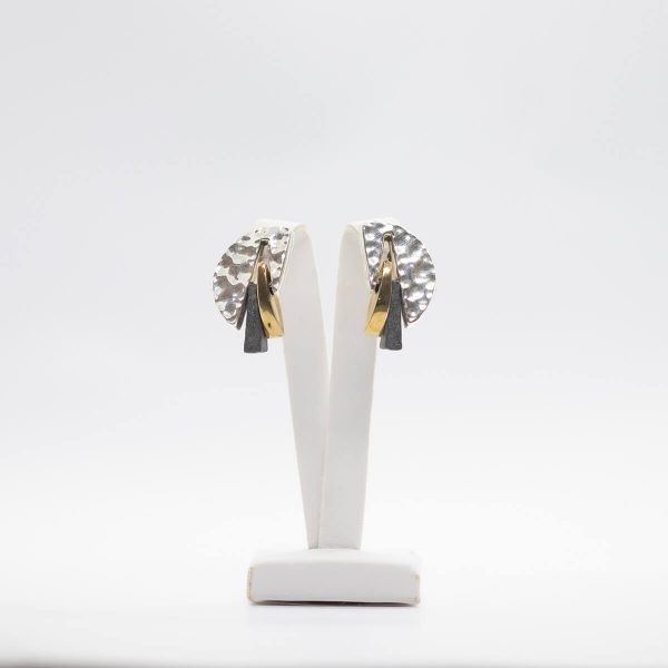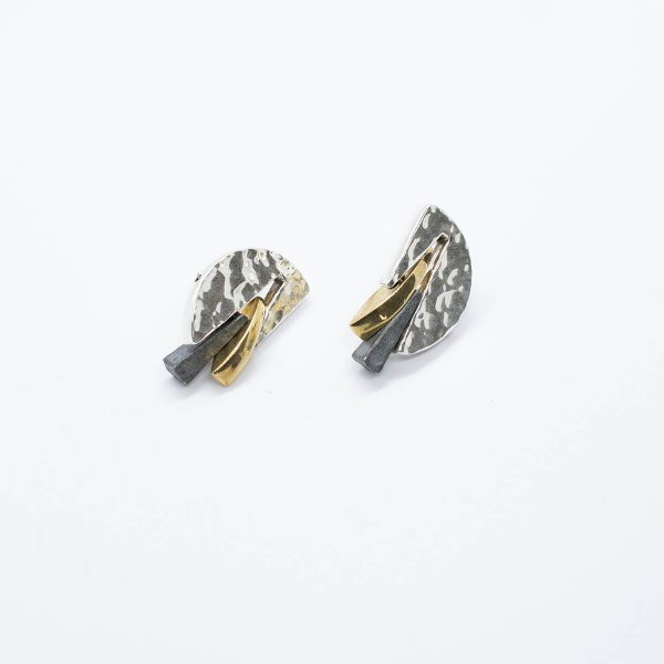 Silver earrings are combined with gold plated silver and oxidized silver.