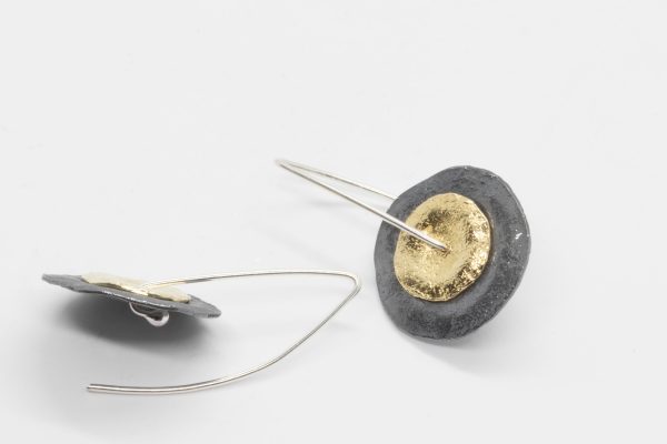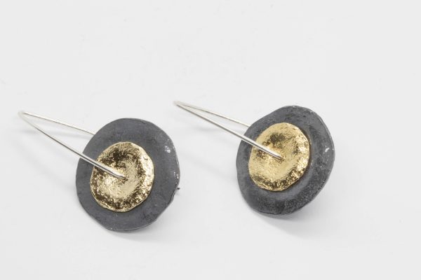 sterling silver earrings with gold plated piece and oxidized silver piece.