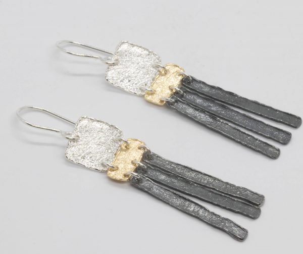 sterling silver earrings with gold plated piece and oxidized silver piece.