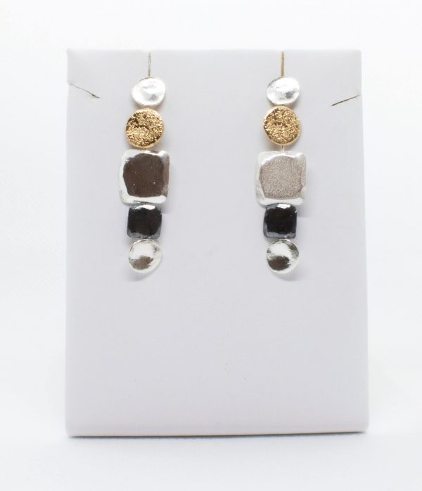sterling silver earrings with gold plated piece and oxidized silver piece. Made in Israel