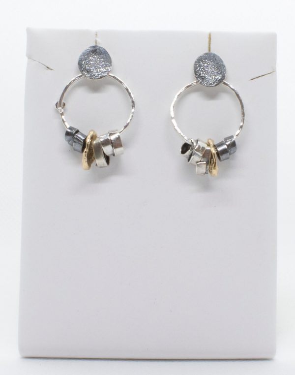 sterling silver earrings with gold plated piece and oxidized silver piece. Made in Israel