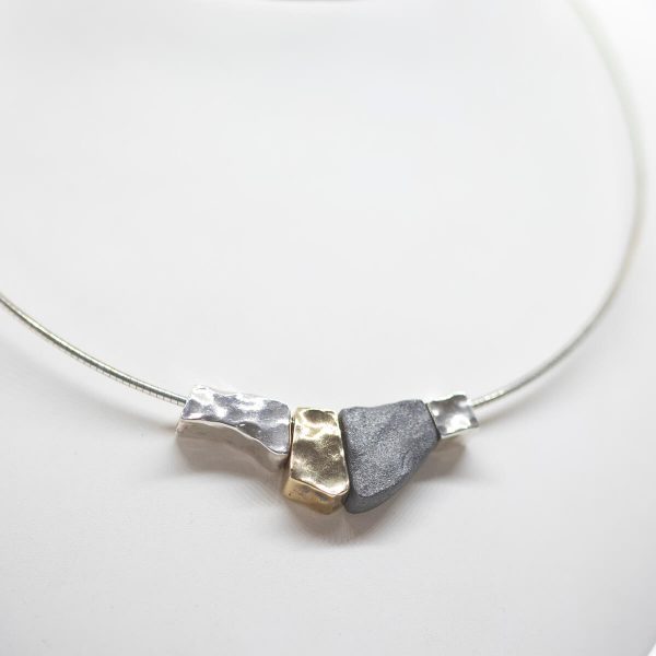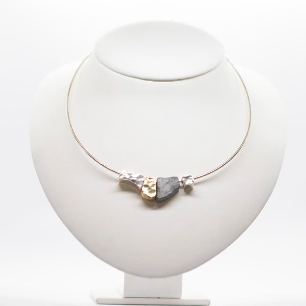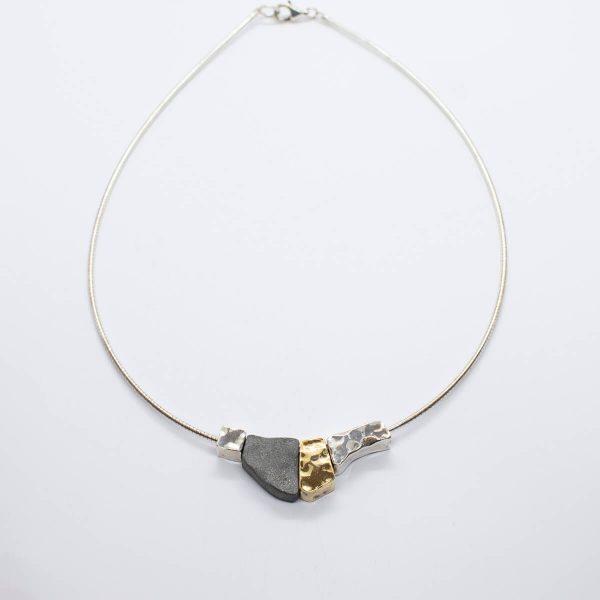 Sterling silver necklace with gold-plated pieces and oxidized silver.
